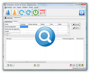 Botón Buscar. Pulsando este botón, usted lanzará una búsqueda de asignaciones cuyas propiedades cumplan con las características que usted haya indicado en los controles de filtro de las pestañas. Al finalizar la búsqueda, en la tabla de asignaciones apareceran las asignaciones que se hayan encontrado.
