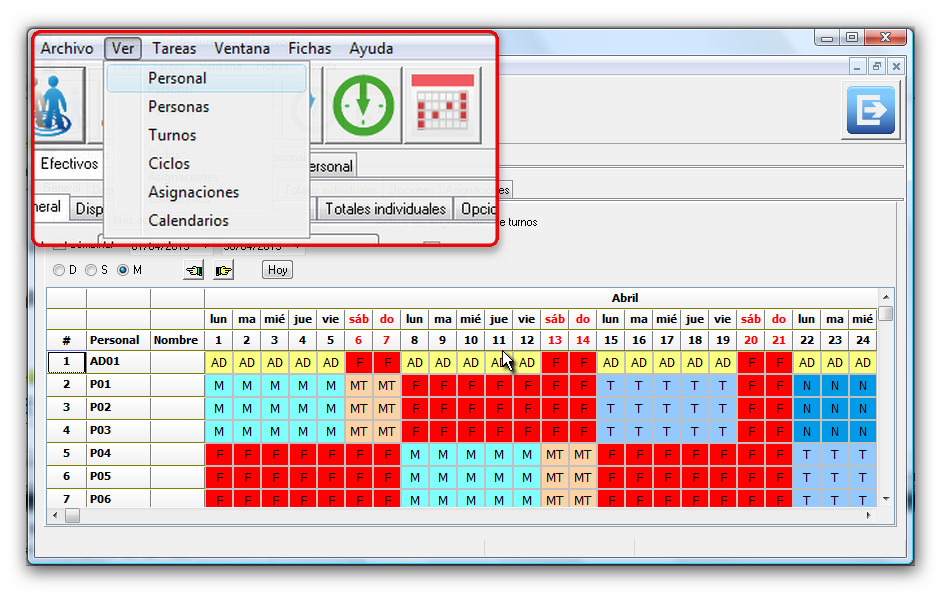 Para acceder al módulo haga clic sobre el botón correspondiente que aparece en la parte superior de la ventana de la aplicación (icono ), o bien en el menú Ver escoja la opción Personal.