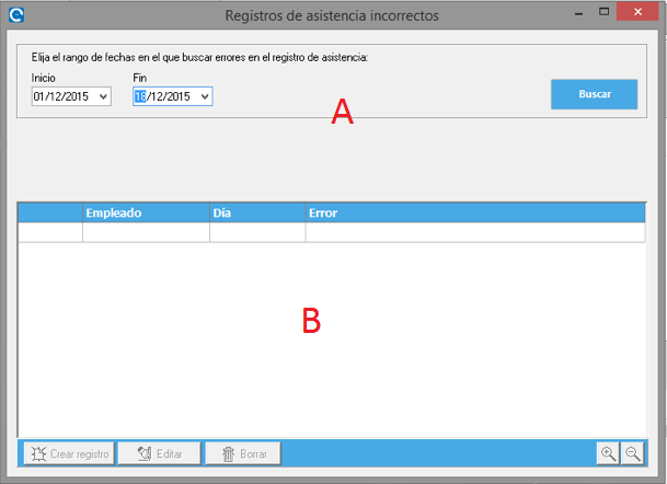 B: Aquí se cargará la lista de registros de asistencia incorrectos.
