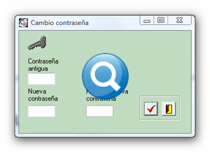 Cambio de contraseña. Muestra una pequeña ventana desde la que usted podrá cambiar la contraseña del usuario con el que usted ha accedido a la aplicación