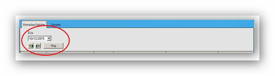 Esta vista muestra los movimientos del personal de un día en concreto. Útil para comprobar si alguien no ha fichado.